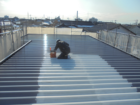 施工中01 下塗り(錆止め)